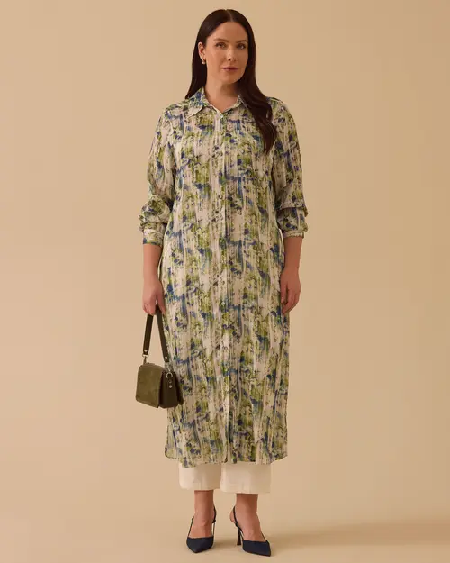 Plus Size Floral Patterned Long Tunic offers stylish and comfortable wear with its elegant floral patterns and comfortable cut.