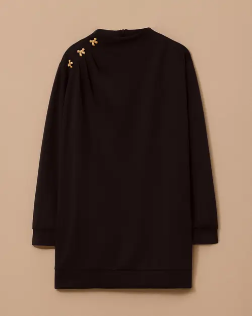 Draped Tunic with Shoulder Accessories offers a modern and sophisticated style with its elegant shoulder details and stylish draped design.