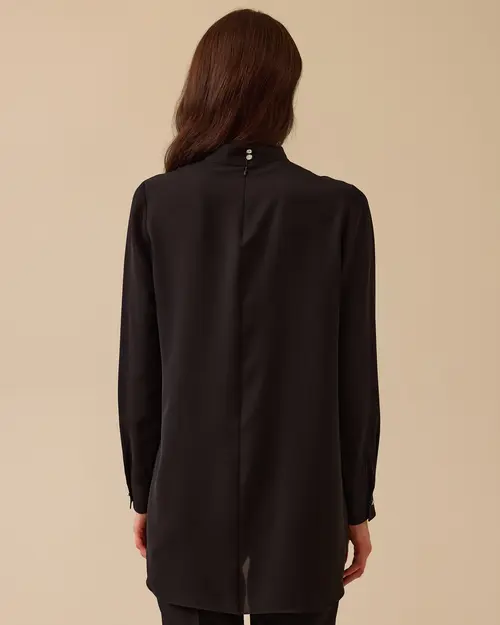 Elegant Tunic with Stone Details can be worn both on special occasions and daily elegance with its elegant collar details and draped cut.