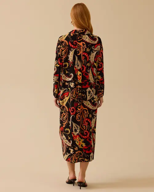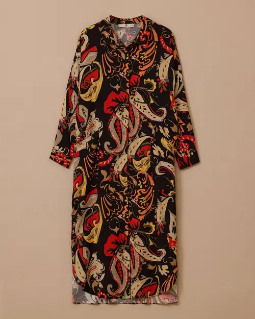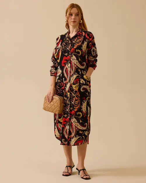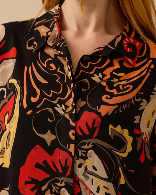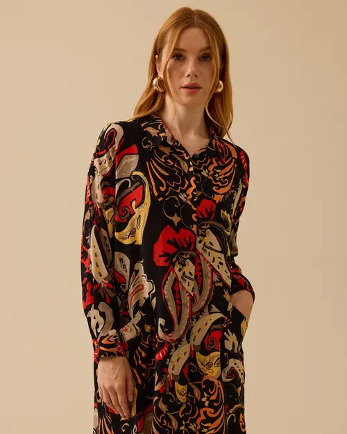 Patterned Long Shirt Tunic offers comfort with its light and fluid texture, and provides both a stylish and modern look with its long cut and buttoned structure.