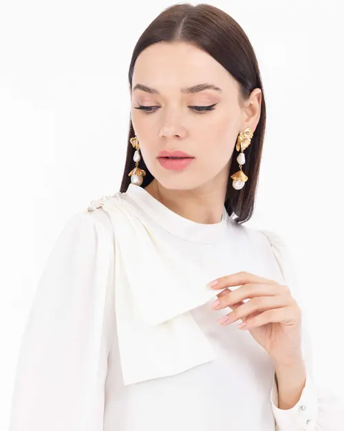 This satin tunic with a high neck enhances your elegance with its shoulder details and offers a comfortable style. The tunic stands out with its chic and sophisticated design, accentuating your body lines flawlessly. The satin fabric provides a luxurious look while the high neck adds a modern touch. You can wear this versatile tunic in any season and for any occasion, pairing it with classic trousers and high-heeled shoes.
