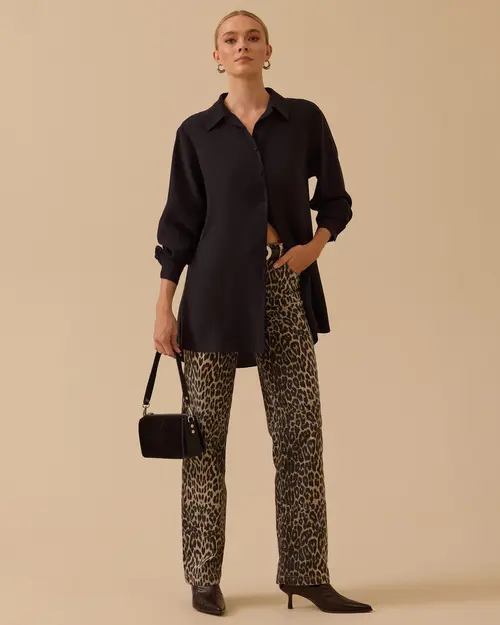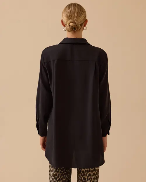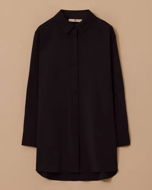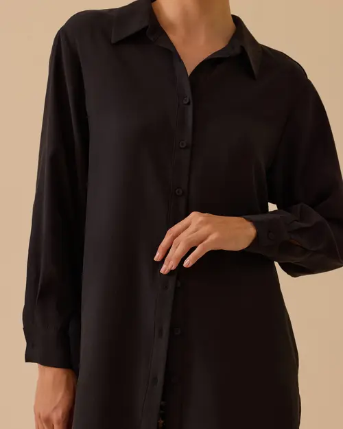 Shirt Collar Long Sleeve Basic Tunic offers daily elegance with its simple design and comfortable cut.