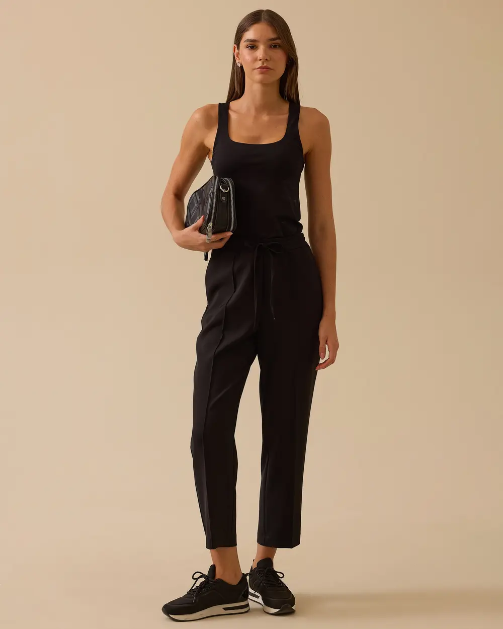 - bağcıklı cepli düz paça pantolon