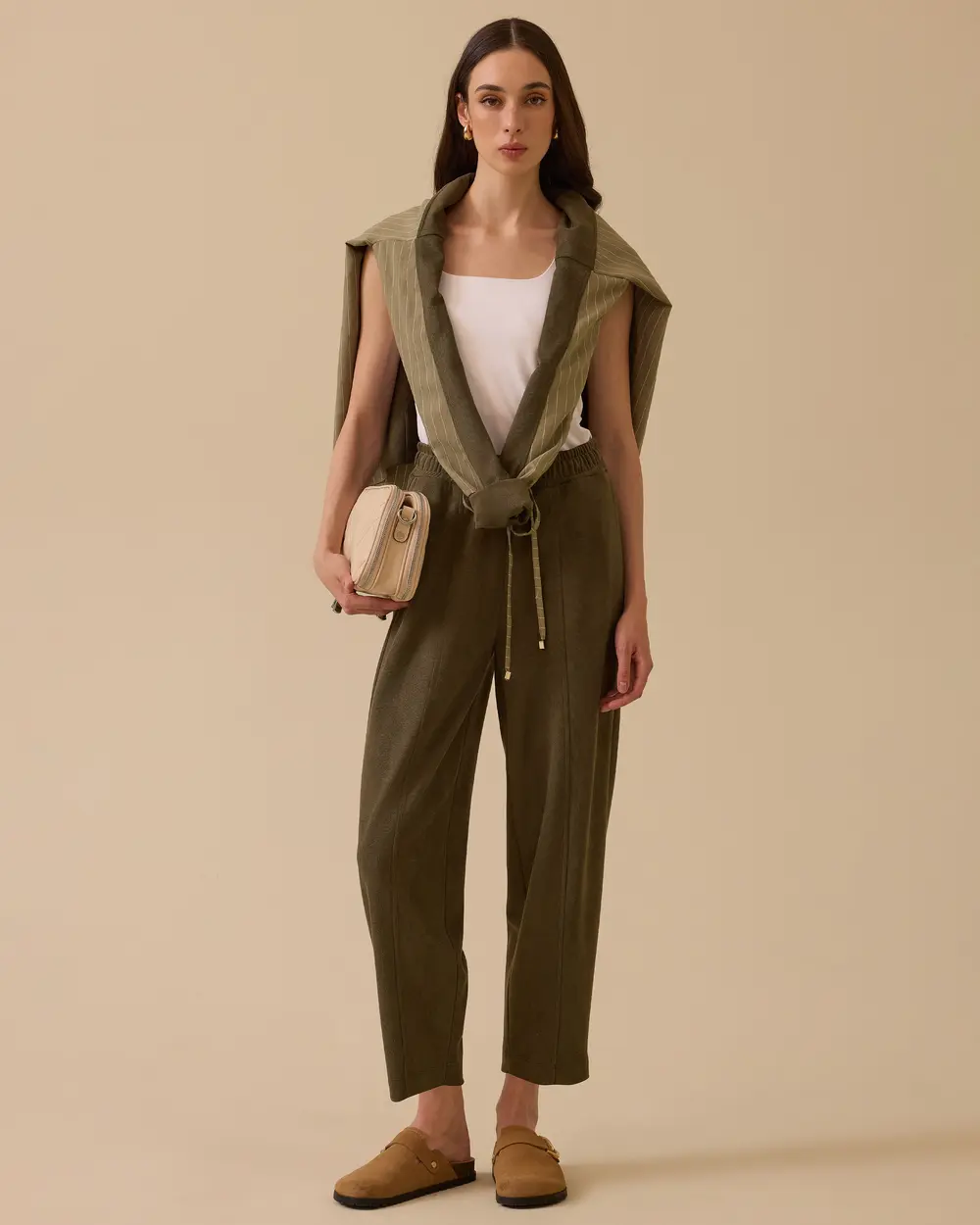 - bağcıklı yüksek bel cepli pantolon