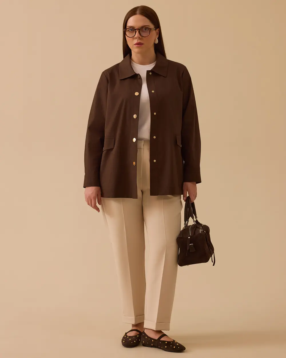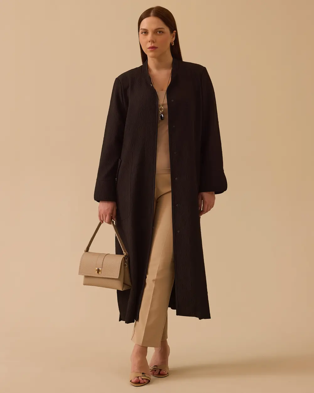 - büyük beden hakim yaka uzun kap