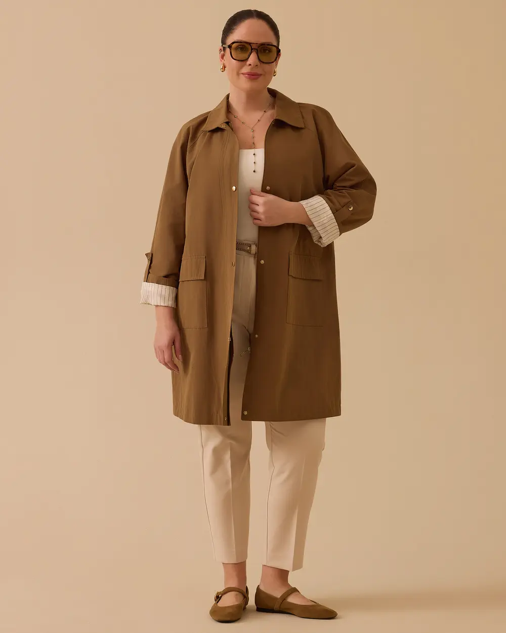 - büyük beden cepli fermuarlı trençkot