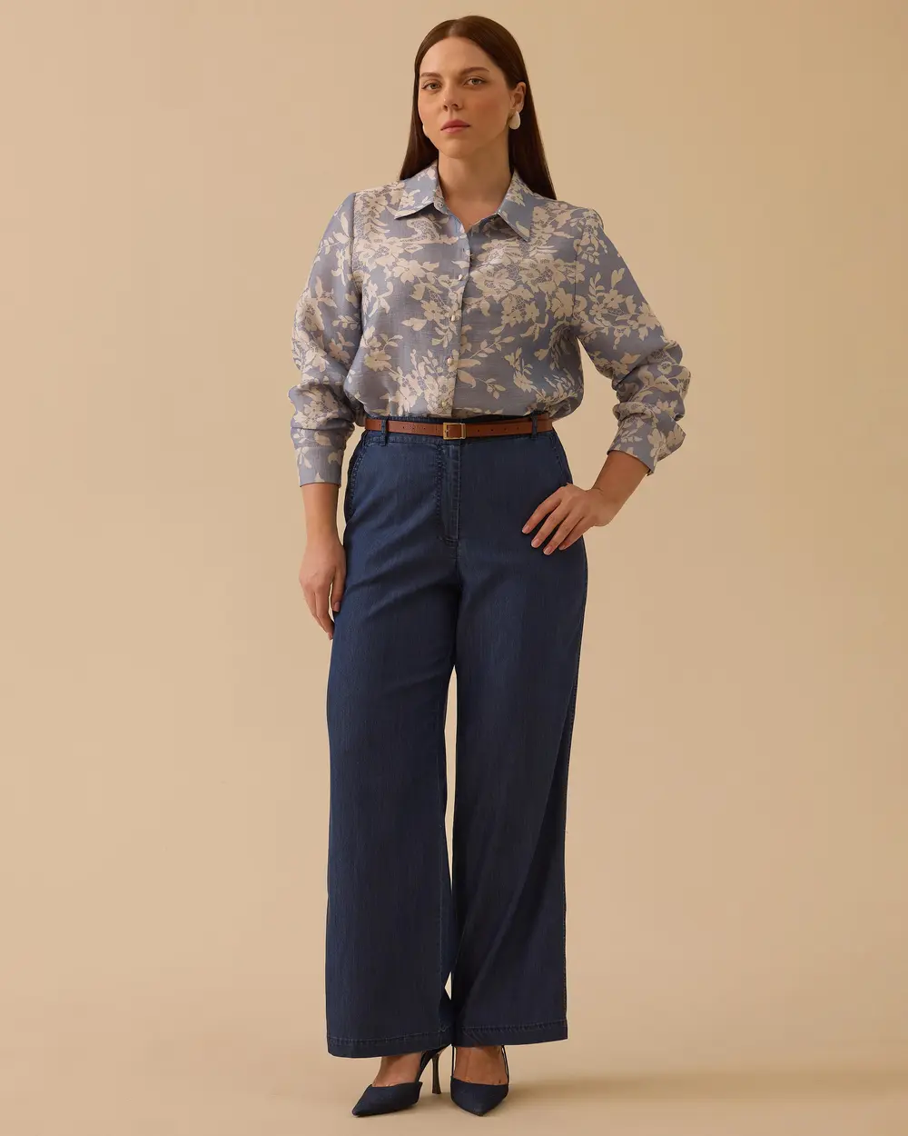 - büyük beden çiçek desenli gömlek