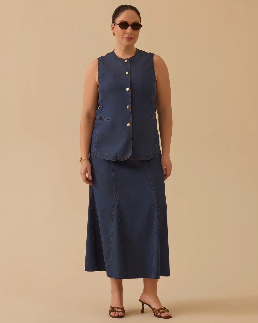 - büyük beden düğmeli jean yelek