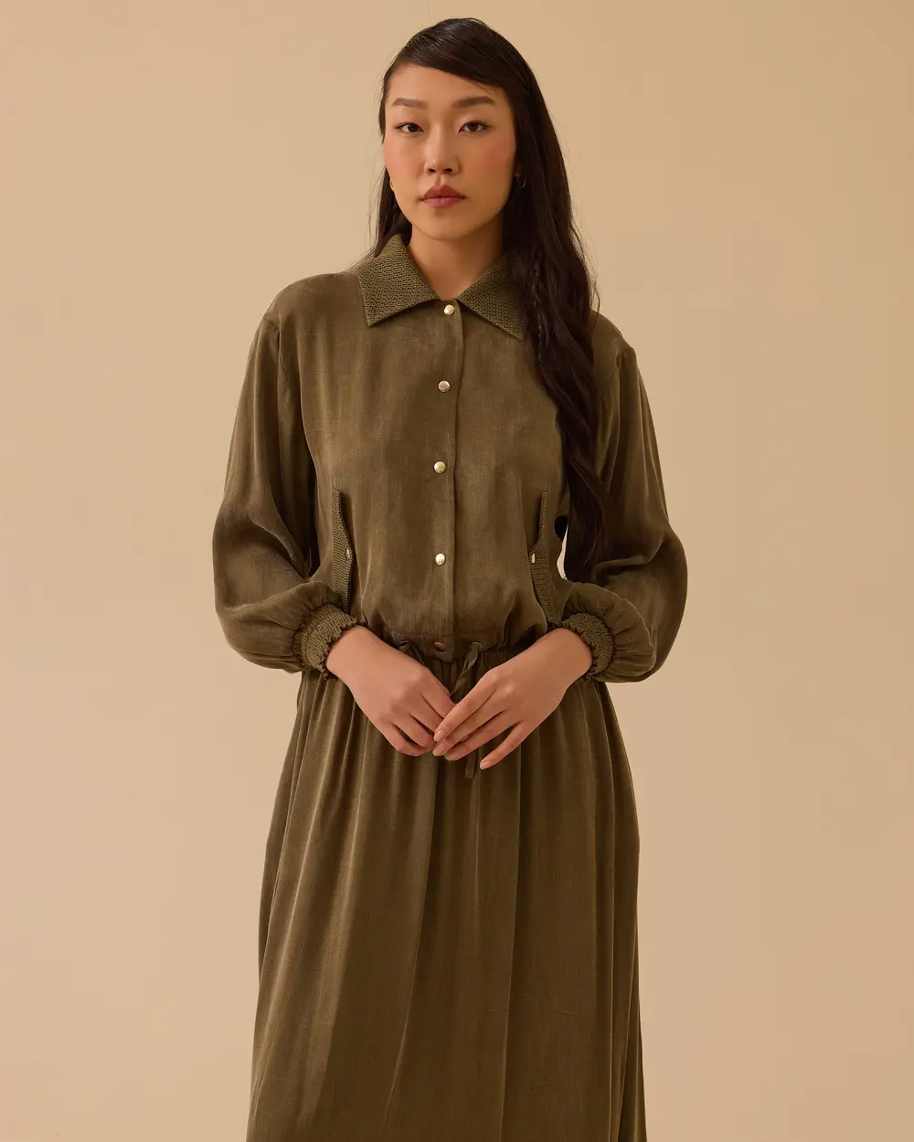 - pile detaylı bel boy gömlek