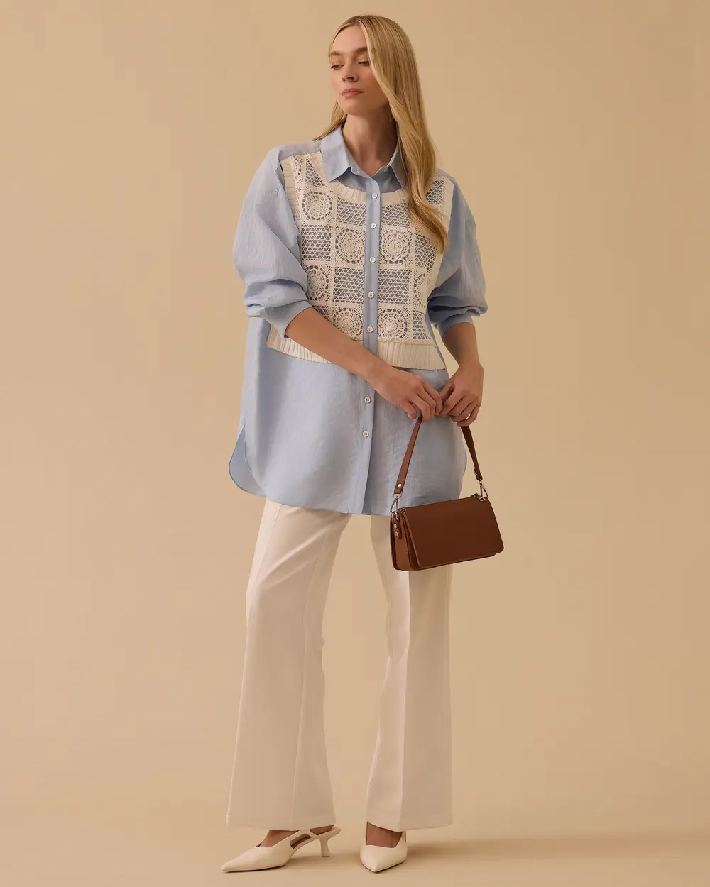 - katmanlı dantel detaylı tunik