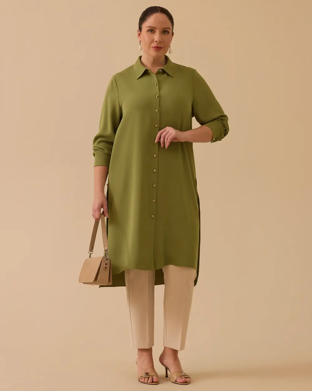 - büyük beden düğmeli basic tunik