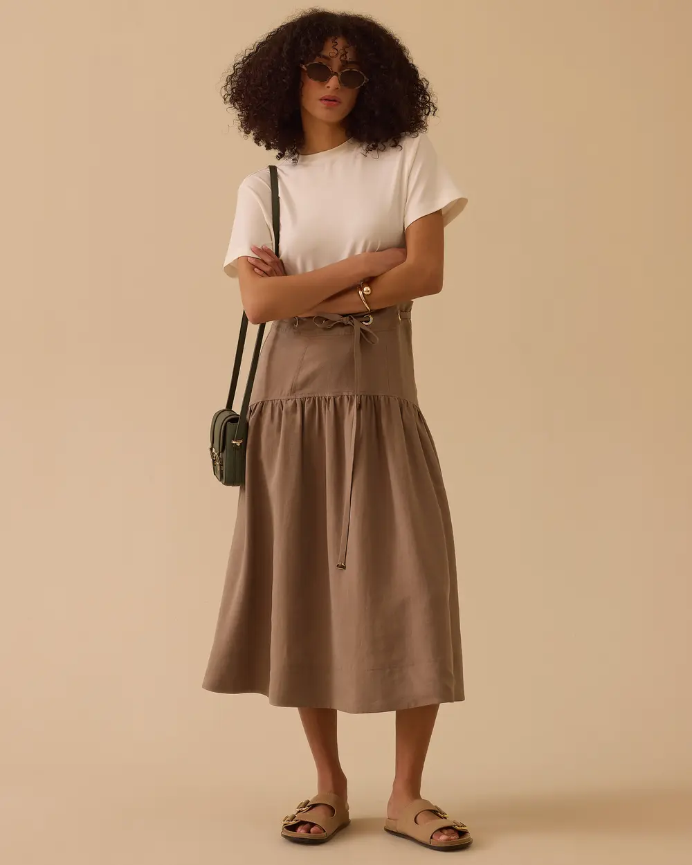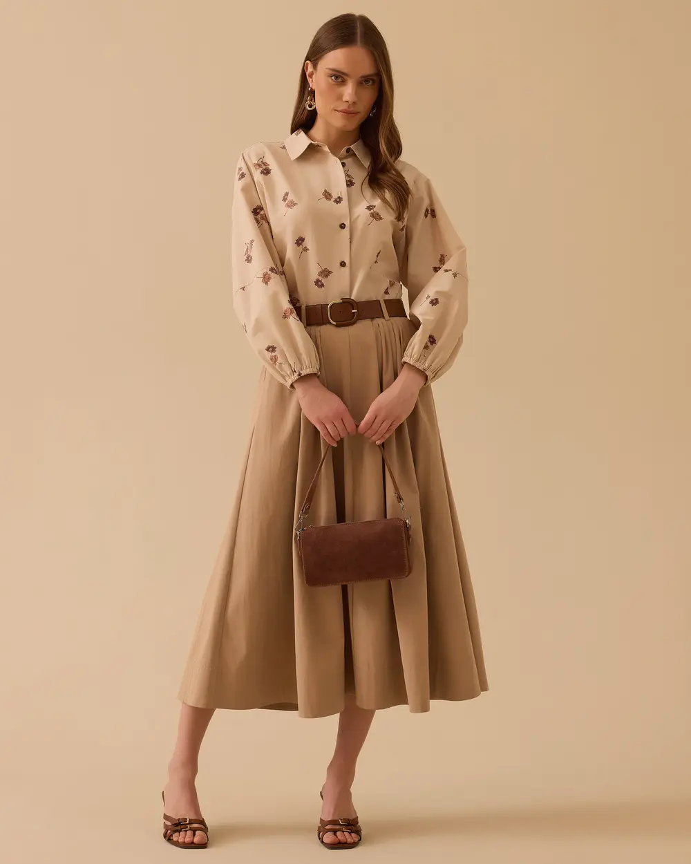 - kemerli pile detaylı midi etek
