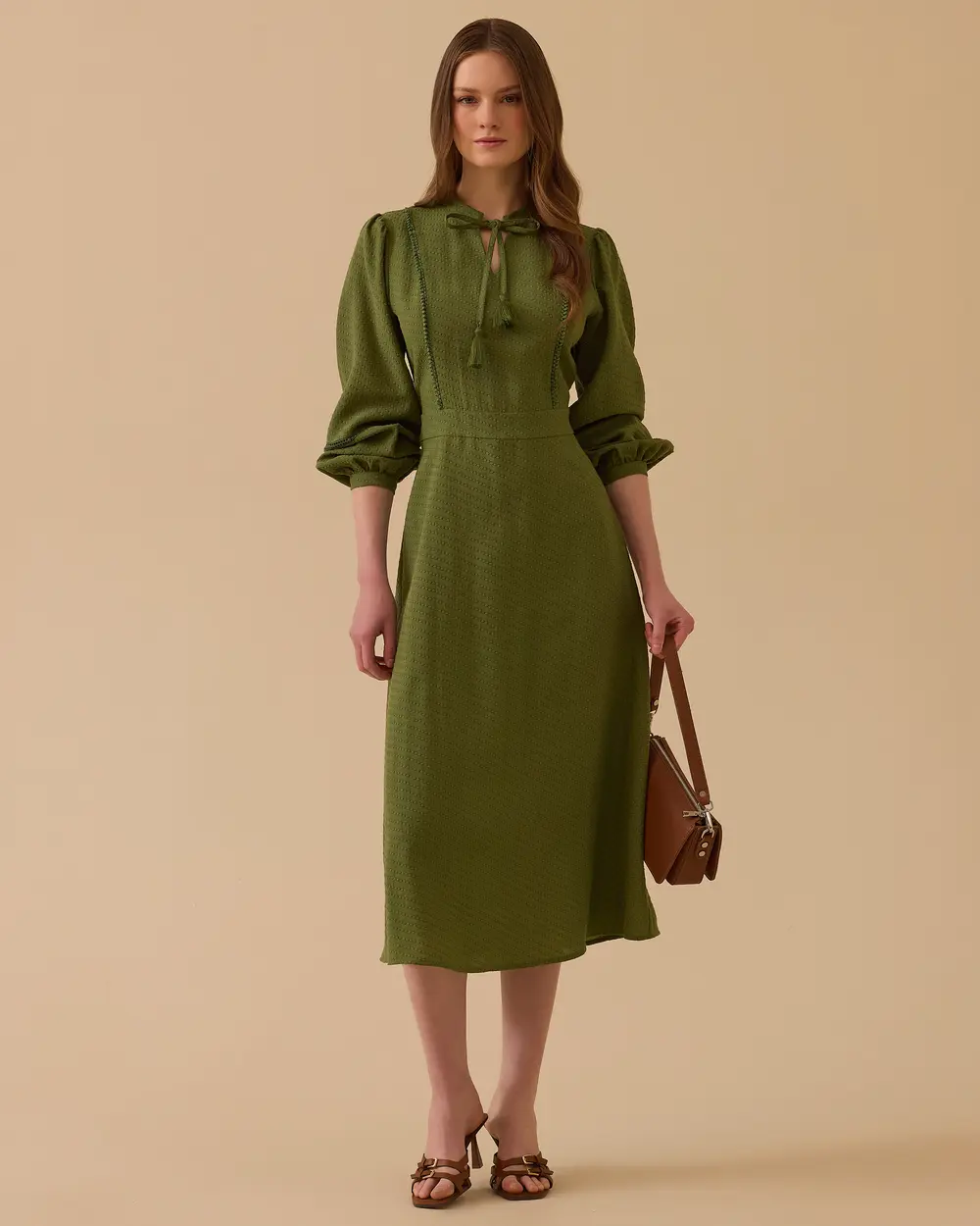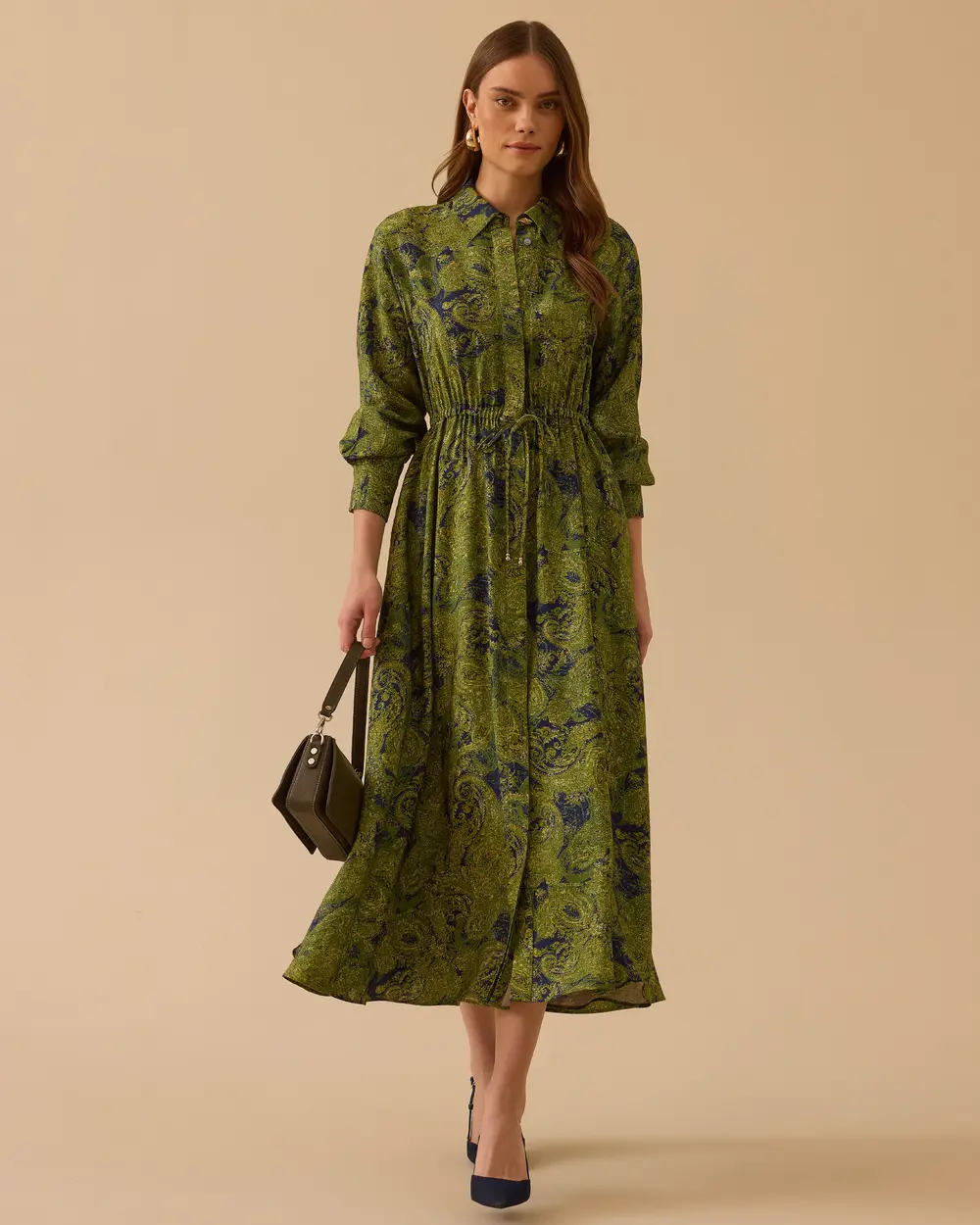 - desenli bağlama detaylı elbise