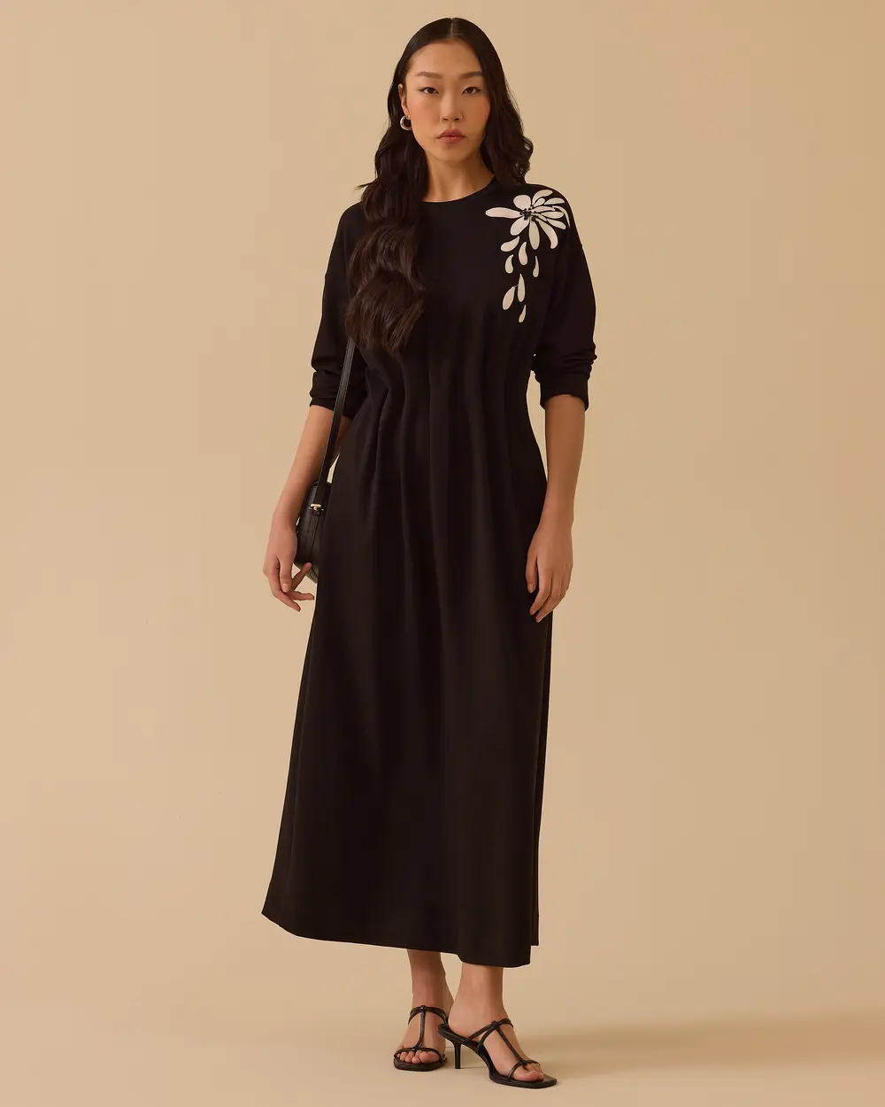 - nakışlı bel büzgülü elbise