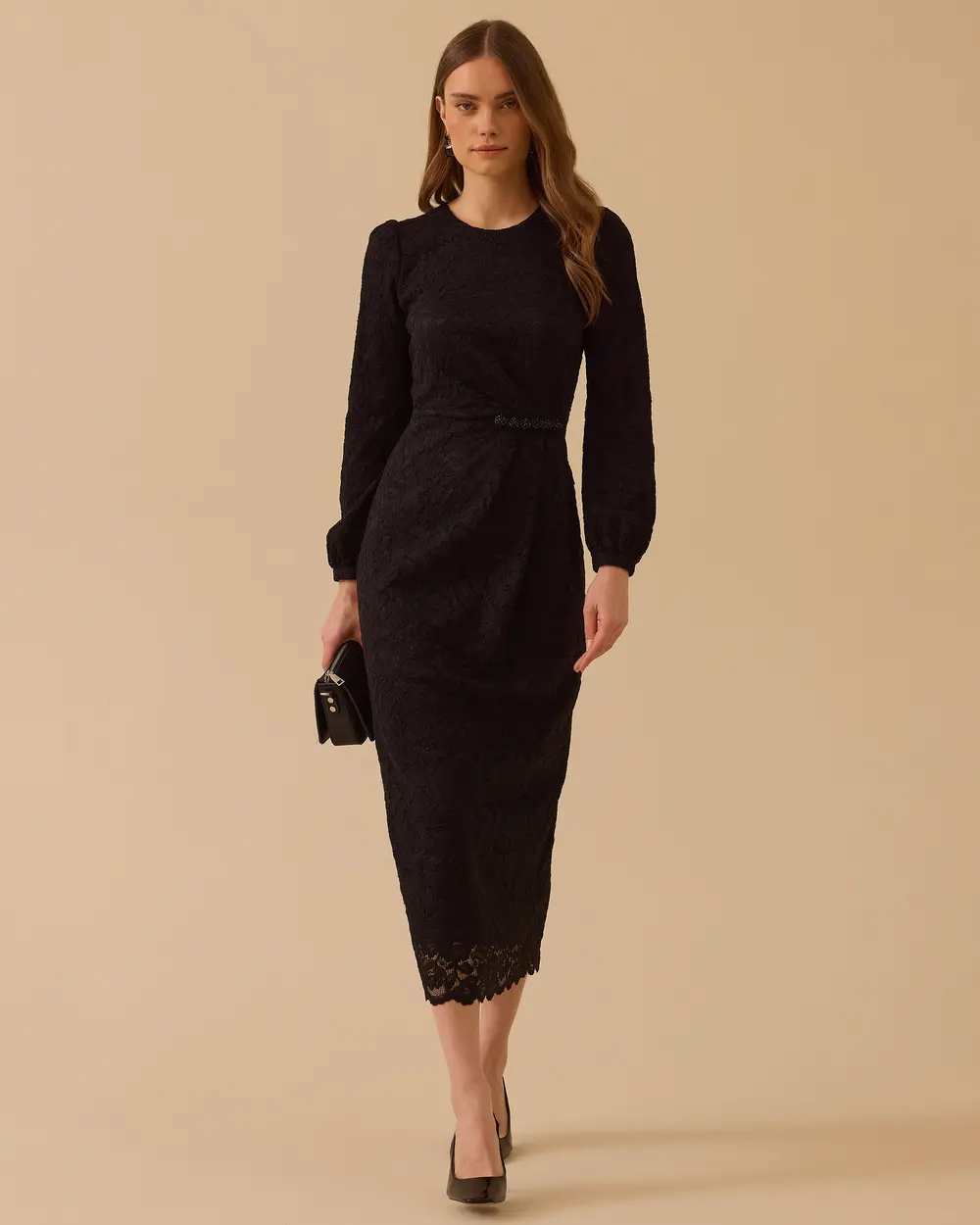 - boncuk detaylı dantel elbise
