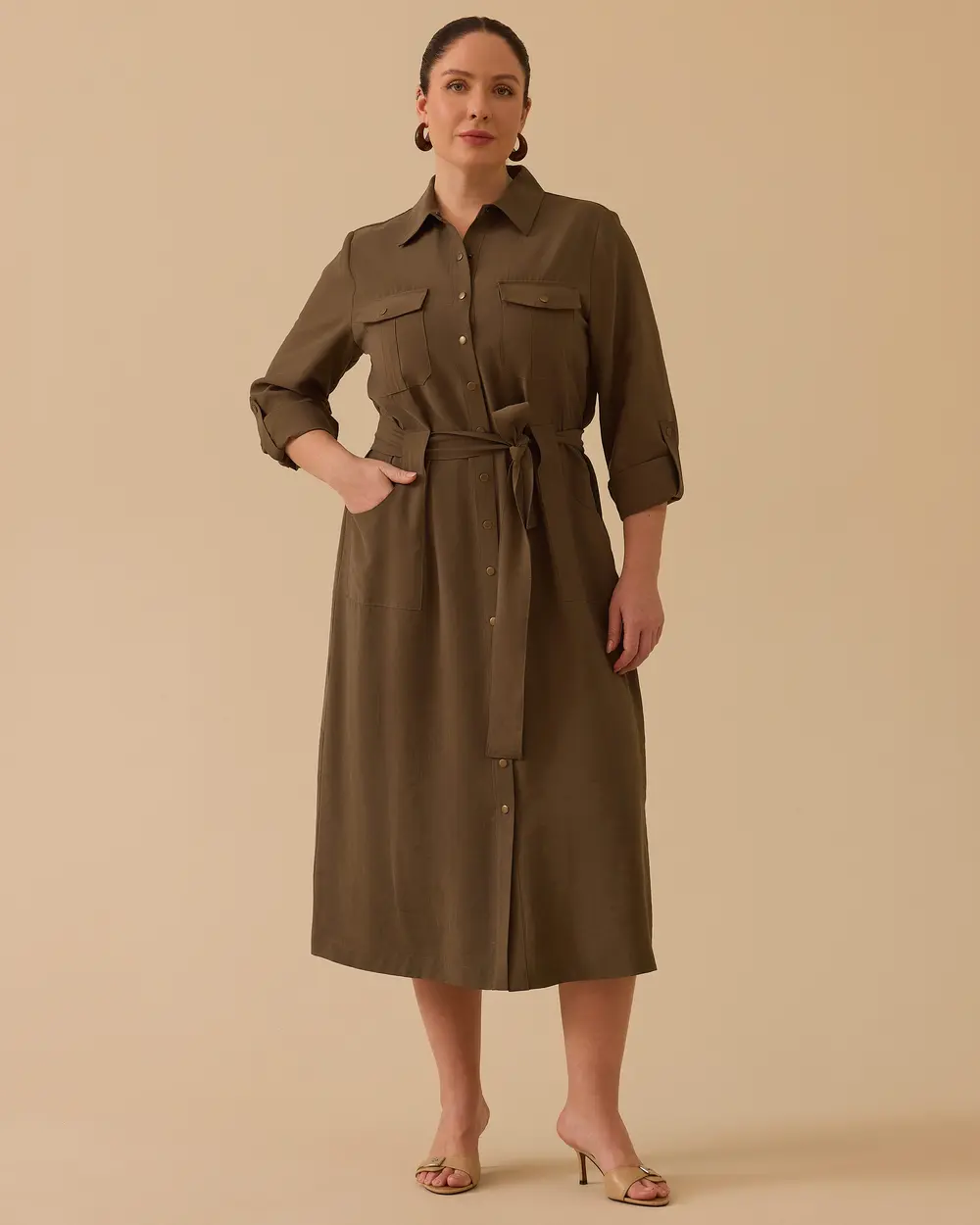 - büyük beden bağlama detaylı cepli elbise