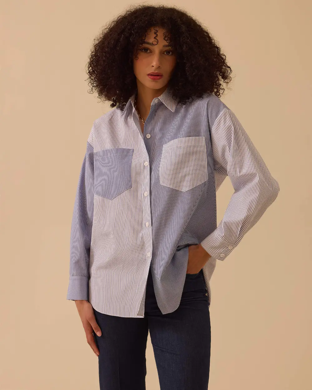 - çizgili cep kuplu gömlek