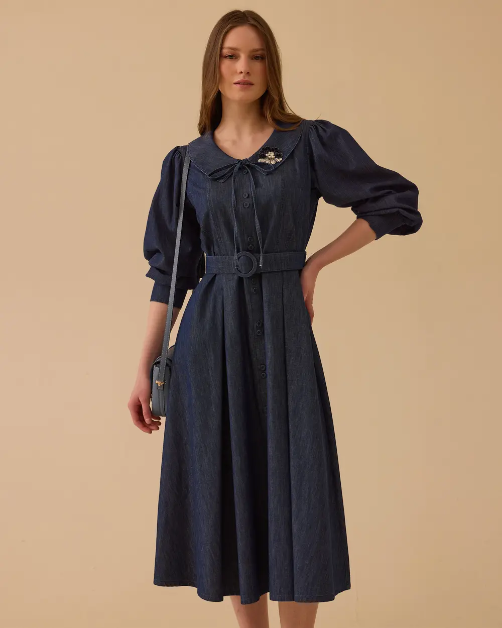 - aksesuarlı kemerli jean elbise