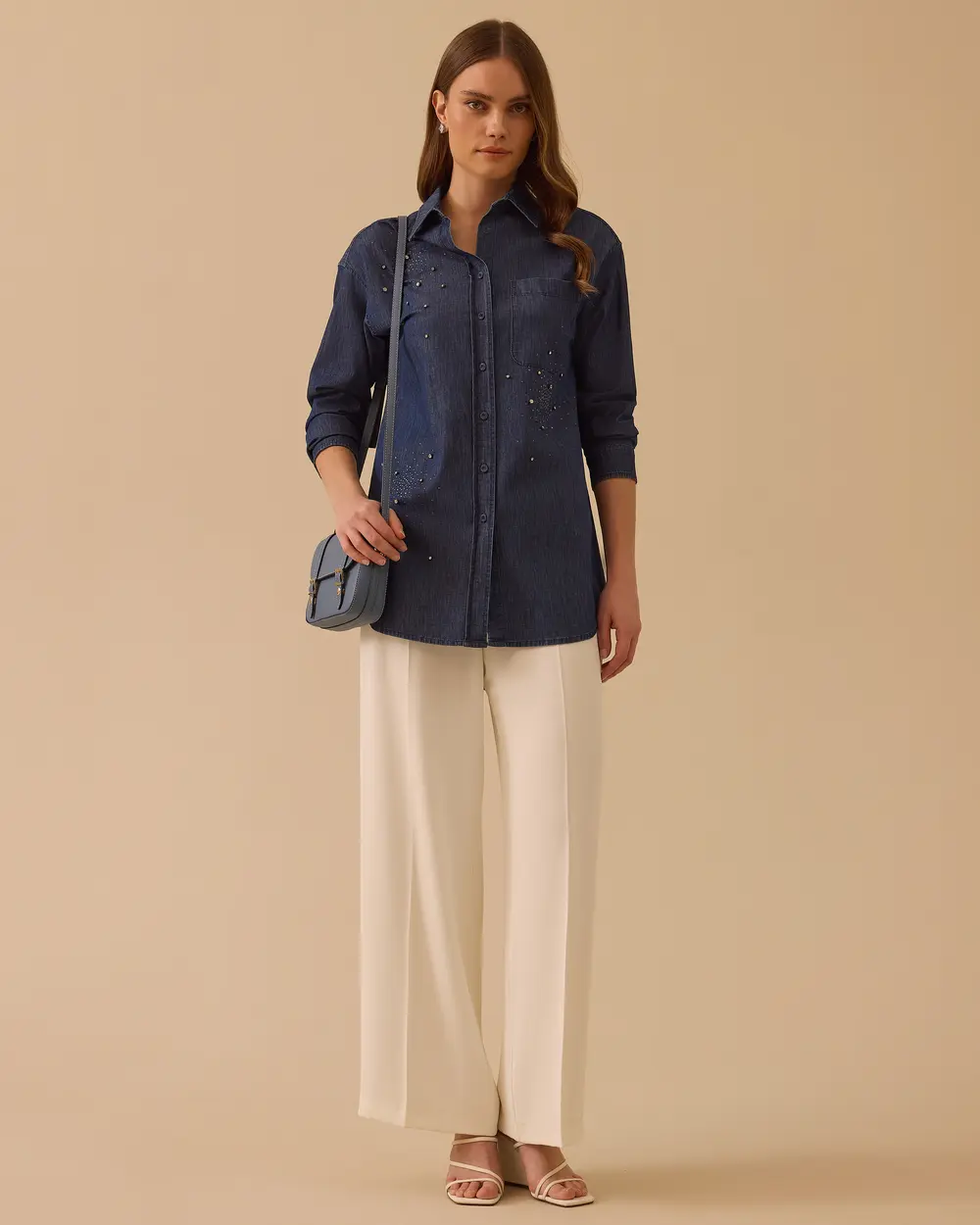 - taşlı jean gömlek