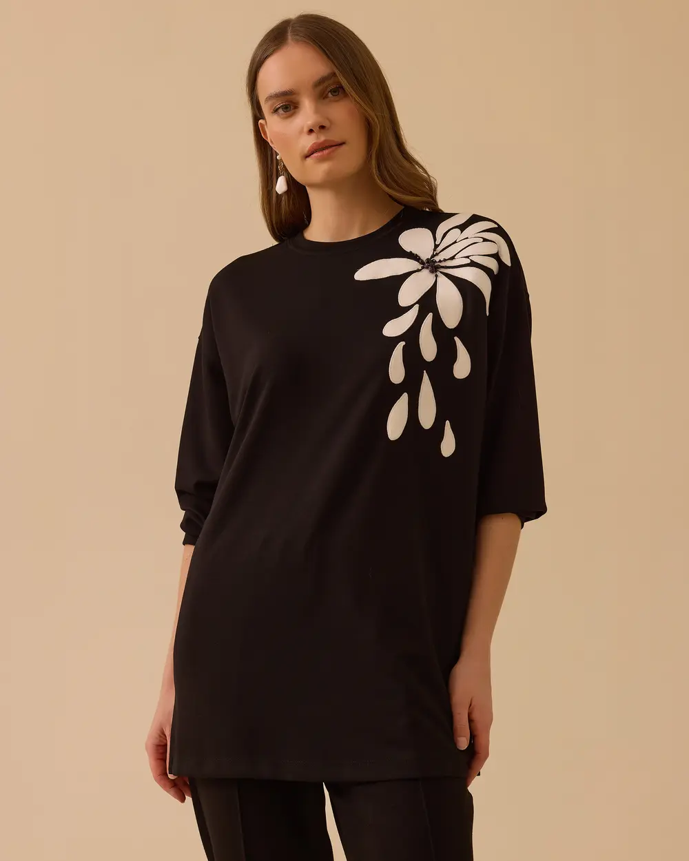 - oversize desenli uzun tunik