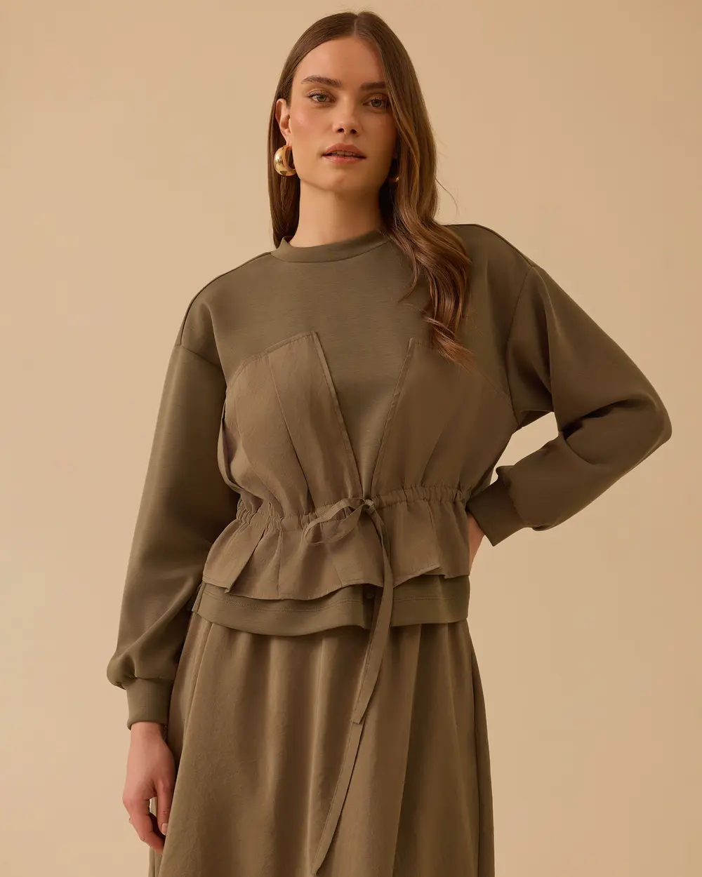 - çift kumaşlı bağcıklı sweatshirt