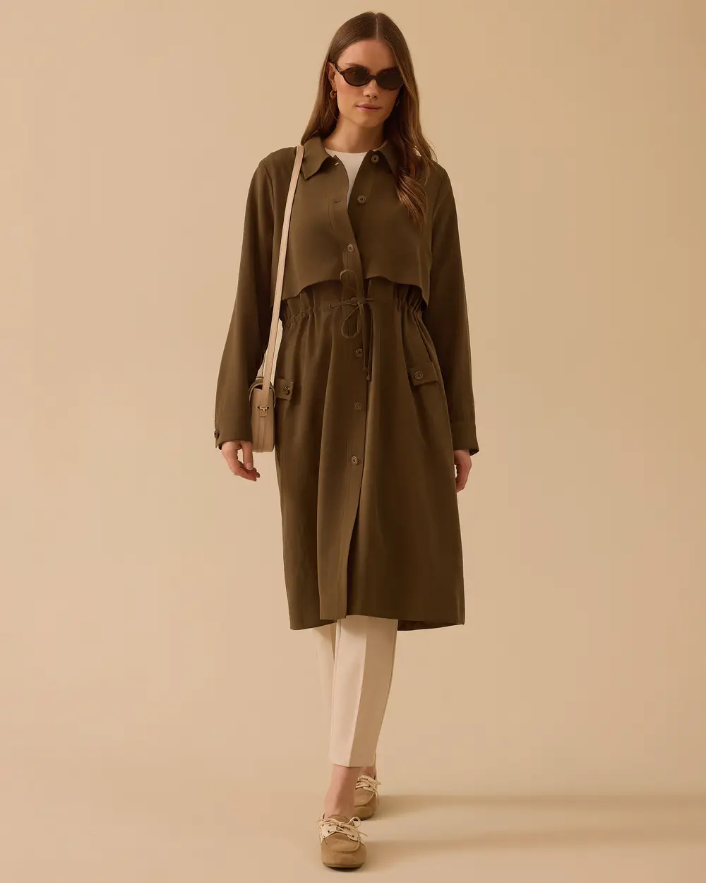 - katmanlı bel bağcıklı düğmeli kap