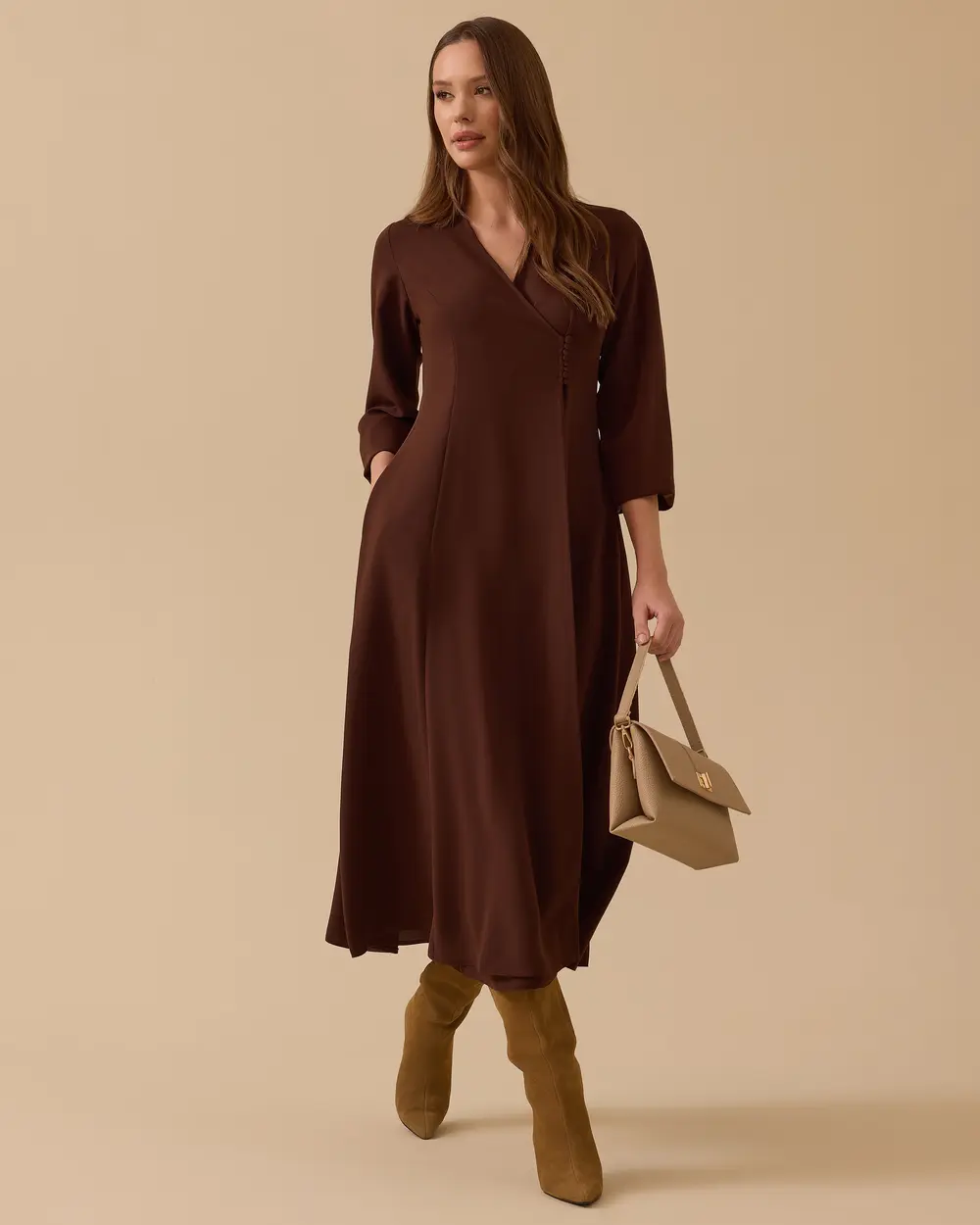 - düğme detaylı kruvaze elbise