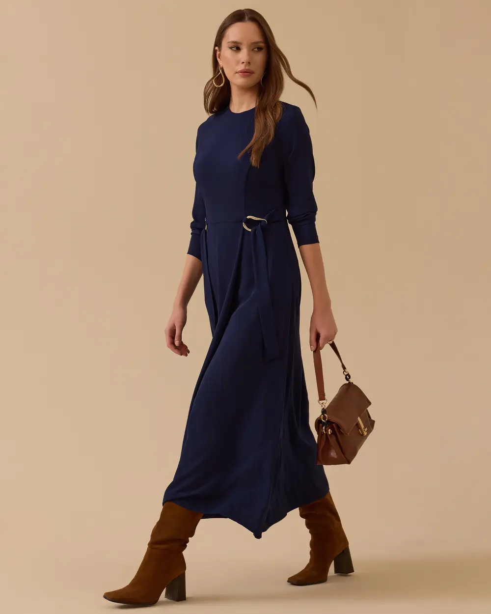 - metal aksesuarlı krep elbise