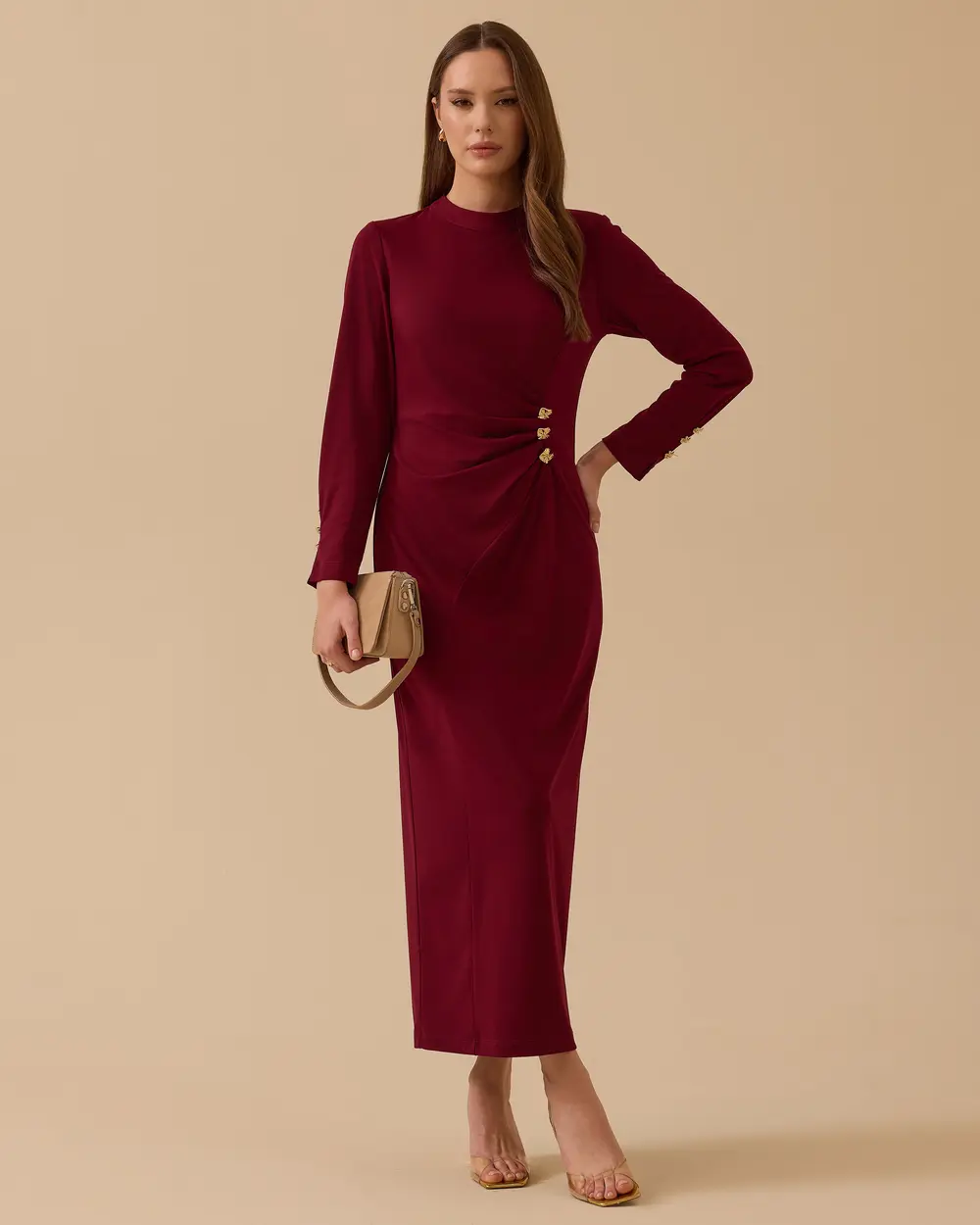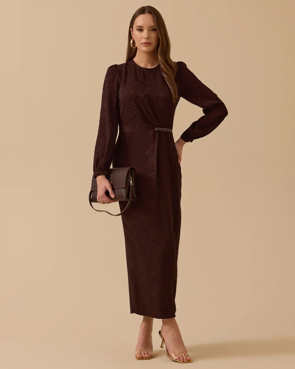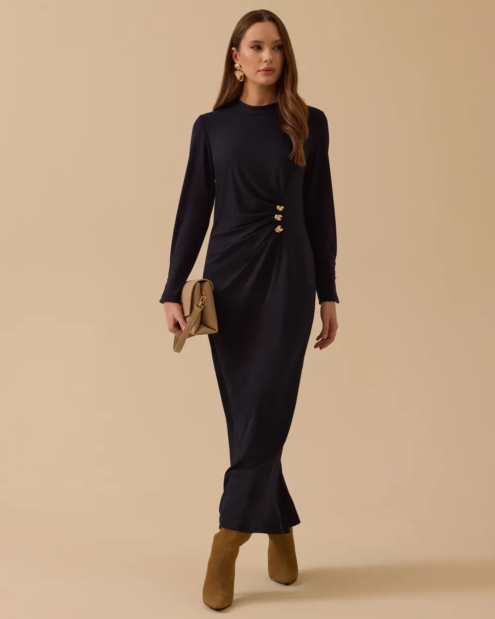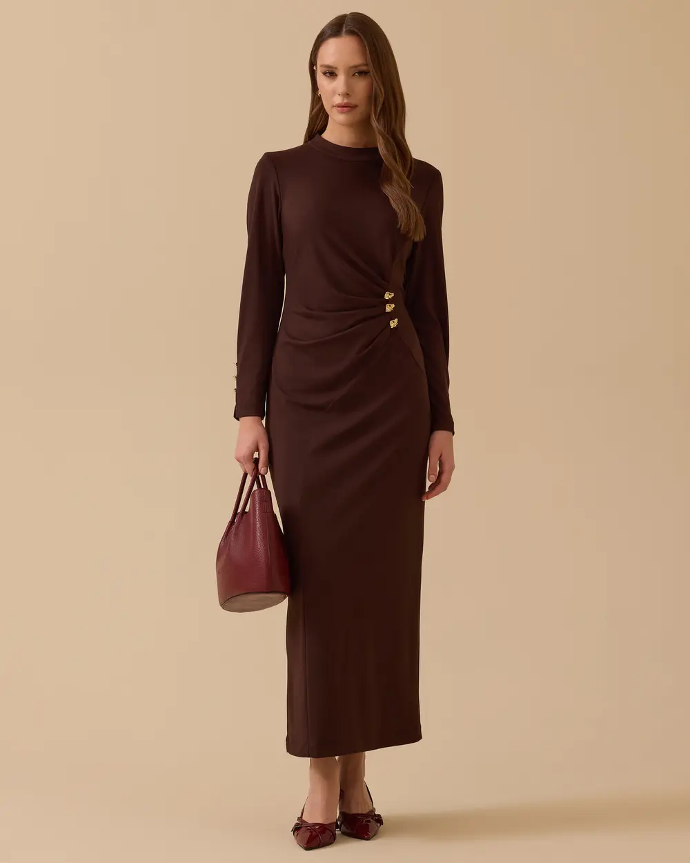 - metal aksesuarlı drapeli krep elbise