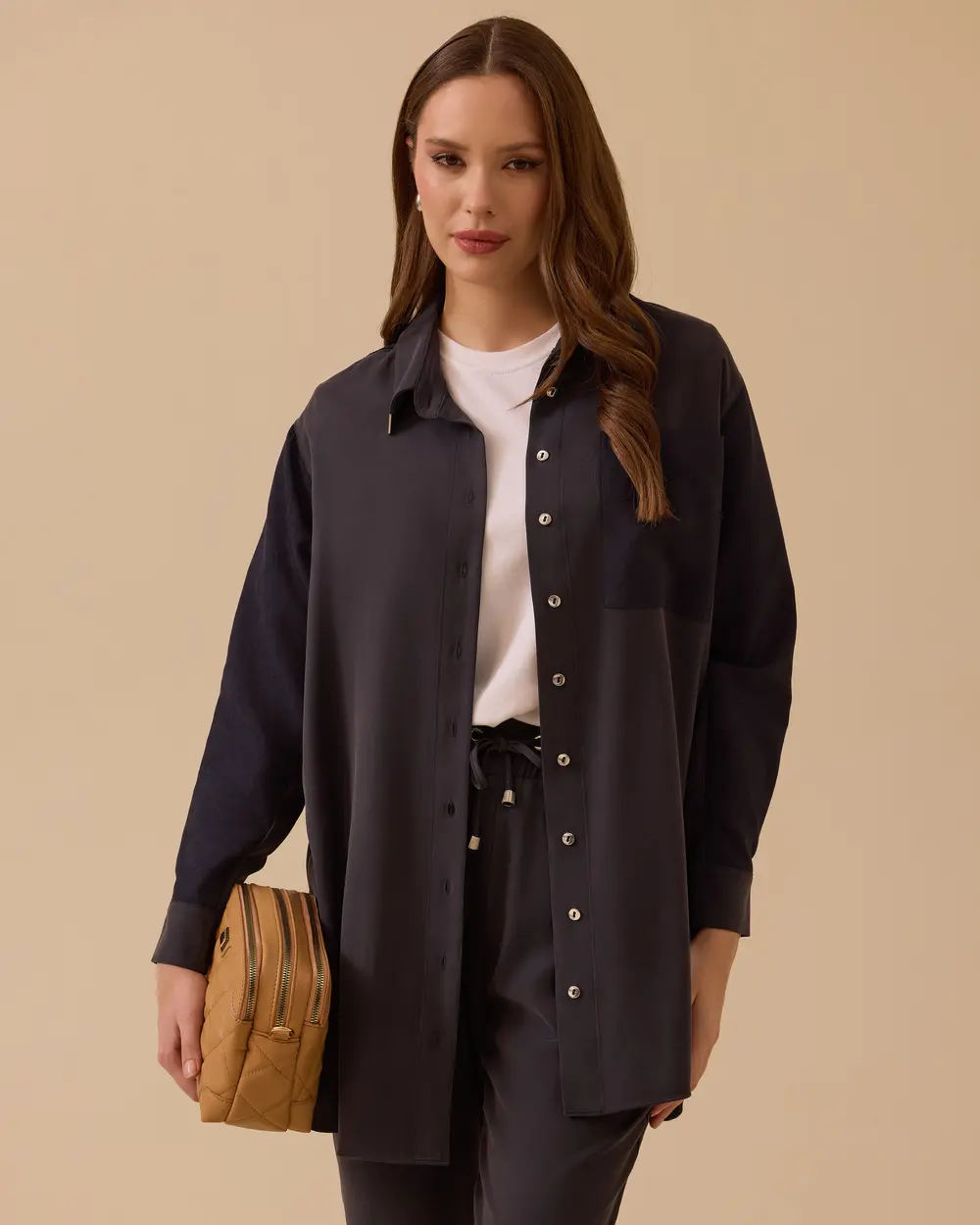 - süet cep detaylı düğmeli gömlek