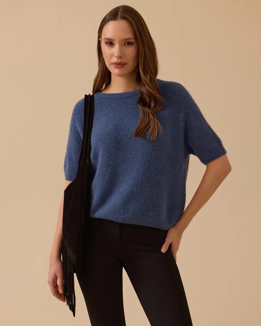- kısa kollu triko bluz