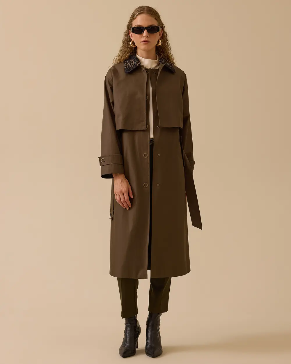 - çift kullanımlı leopar detaylı trençkot