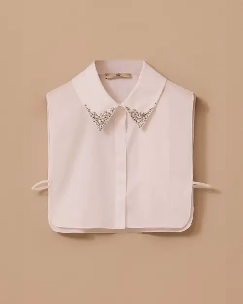 Taş İşlemeli Çıkarılabilir Yaka, sade parçaları anında ışıltılı ve modern bir görünüme taşır.