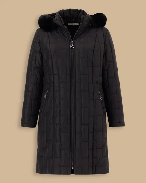 Büyük Beden Kapüşonlu Şişme Anorak Kaban, fermuarlı tasarımıyla sıcak ve rahat kullanım sağlar.