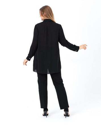 Klasik kesim duruşa şıklık ve zerafet katan gömlek, broş detayı ile göz dolduruyor. Şifon kumaşının rahatlığı ve şıklığını stilinizde hissedeceğiniz gömleği, Galaxi etek ve pantolonlarla kombinleyerek bütün davetlerde dikkatleri üzerinize çekebilirsiniz.