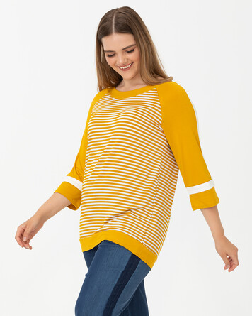 Büyük Beden Çizgi Desenli Truvakar Kol Tişört