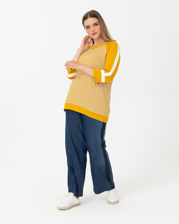 Gardıropların kilit parçalardan biri olarak koleksiyondaki yerini alan çizgili tişört, her sezon stilinizin önemli bir tamamlayıcısı olmaya aday. Bluzu jean pantolonların üzerinde kullanarak rahat ve dinamik bir stil yansıtabilirsiniz.