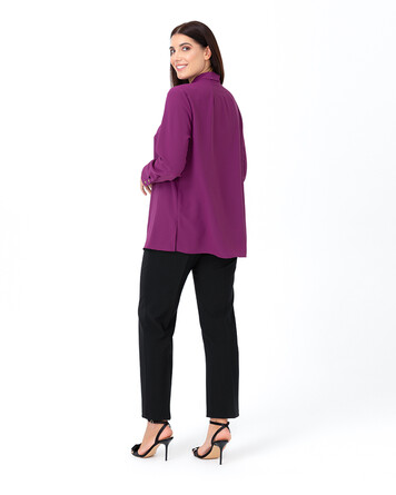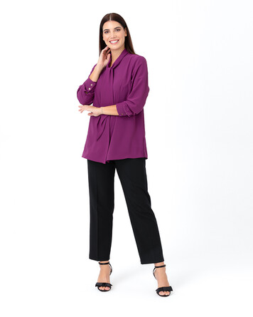 Fuları ile dikkat çeken bluz, akışkan kumaşı ve renkleri ile şıklığını katlıyor. Bluzu, siyah klasik pantolonlar ve topuklu ayakkabılar ile kombinleyerek, dikkatleri üzerinizde toplayabilirsiniz.