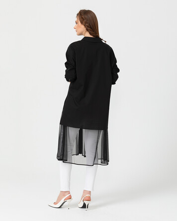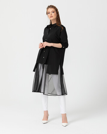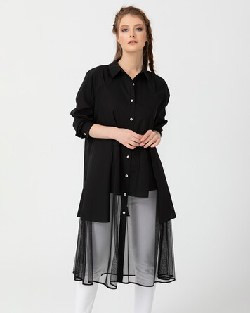 Tül detayı ile romantik bir stil kazanan tuniği, beyaz pantolonlar ile kombinleyerek detaylarını ön plana çıkarabilirsiniz.