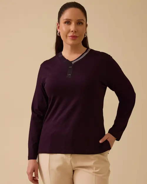 Büyük Beden Şerit Detaylı Bluz, yakasındaki şerit süsleme ve rahat kalıbıyla günlük kombinlere modern bir hava katar.