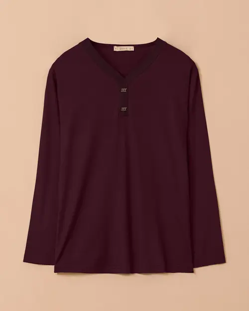 Büyük Beden V Yakalı Boncuk Detaylı Bluz