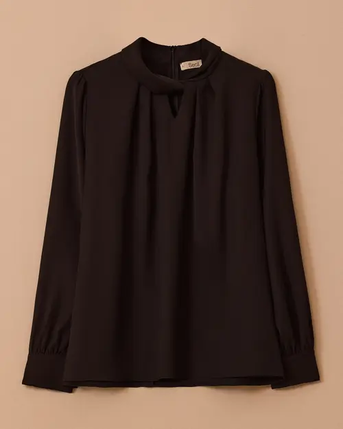 Büzgü Yakalı Pile Detaylı Bluz, zarif büzgü yakası ve pile detaylarıyla şık ve feminen görünüm sunar.
