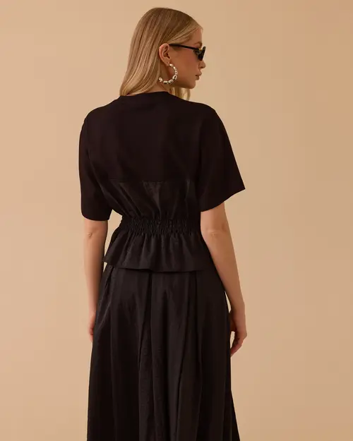 Çift Kumaşlı Beli Lastikli Bluz