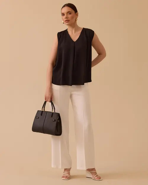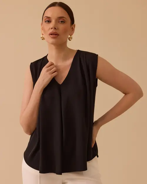 V Yaka Kolsuz Bluz, sade tasarımı ve rahat kesimiyle şık, hafif ve zamansız bir stil sunar.