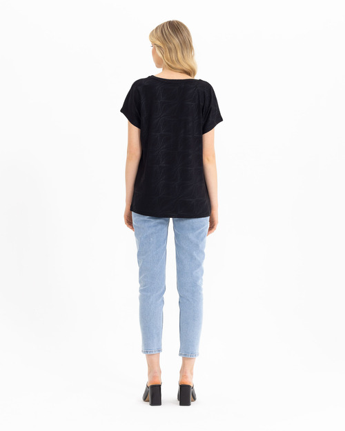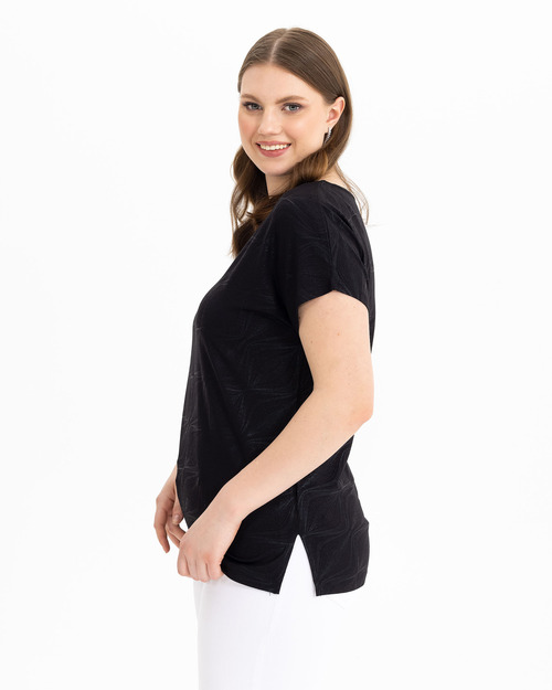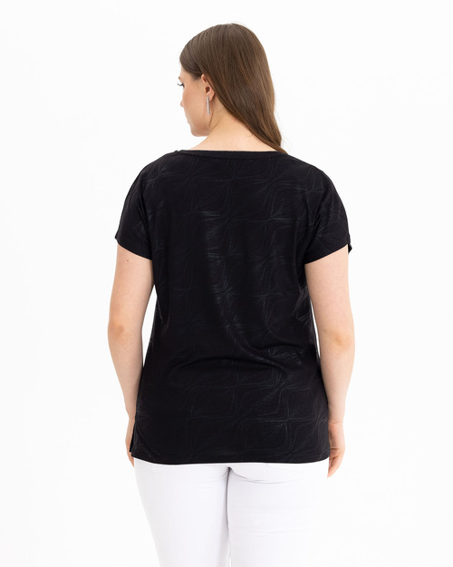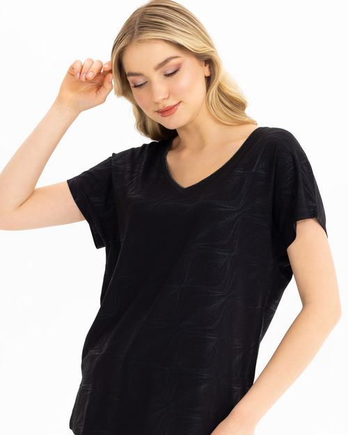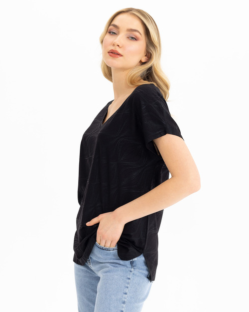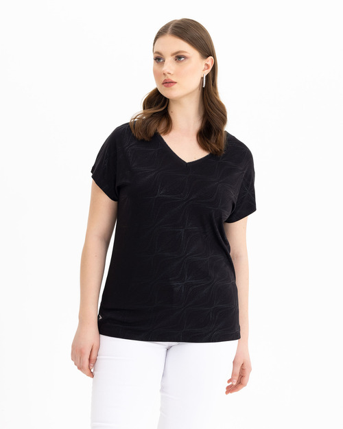 V Yakalı Desenli Tişört