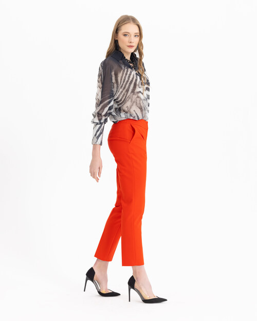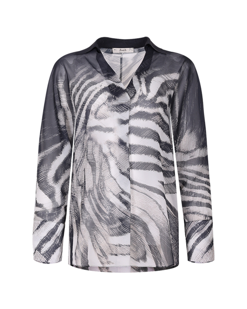 Zebra deseni ile şıklık kazanan bluz, transparan formu ile feminenlik dozunu yükseltiyor. Bluz ü renkli klasik pantolonlar ile kombinlemeyi deneyebilirsiniz.