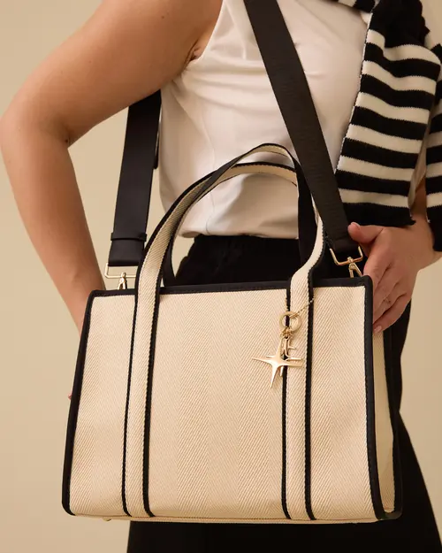 Aksesuarlı Biye Detaylı Kol Çantası, kontrast biye hatlarıyla modern bir duruş sergiler. Askı kısmındaki dekoratif aksesuar detayıyla şıklığı tamamlar, günlük kombinlere zarif bir dokunuş katar.