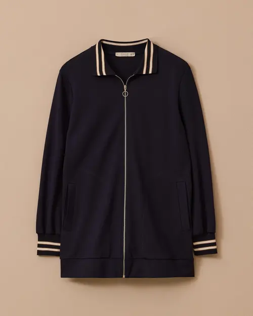 Büyük Beden Şerit Detaylı Fermuarlı Ceket