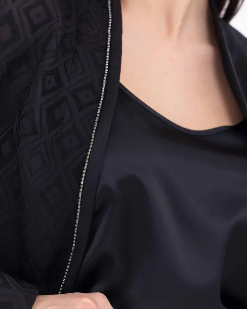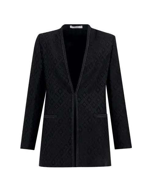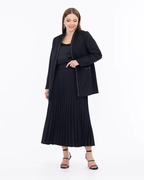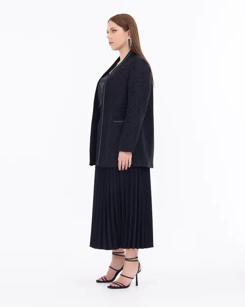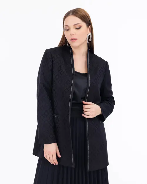 Galaxi Büyük Beden Taş Detaylı Şık Ceket, modern ve şık bir görünüm için tasarlandı. Taş detaylarıyla öne çıkan ceketi, klasik görünümlü kombinlerinizin tamamlayıcı parçası olarak kullanabilirsiniz.