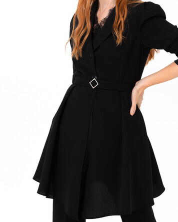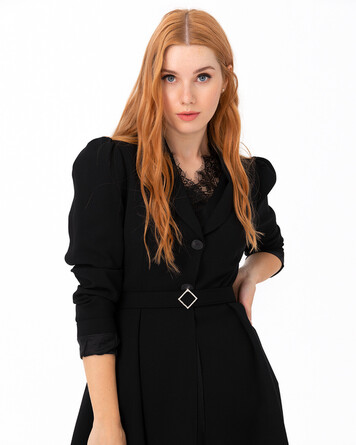Klasik görünüme kemer detayı ile şık bir yorum katan ceket, tül detayı ile de hareketleniyor. Ceketi SCL klasik pantolonları ve Seçil stiletto ayakkabı ile tamamlayarak dikkatleri üzerinize çekebilirsiniz.